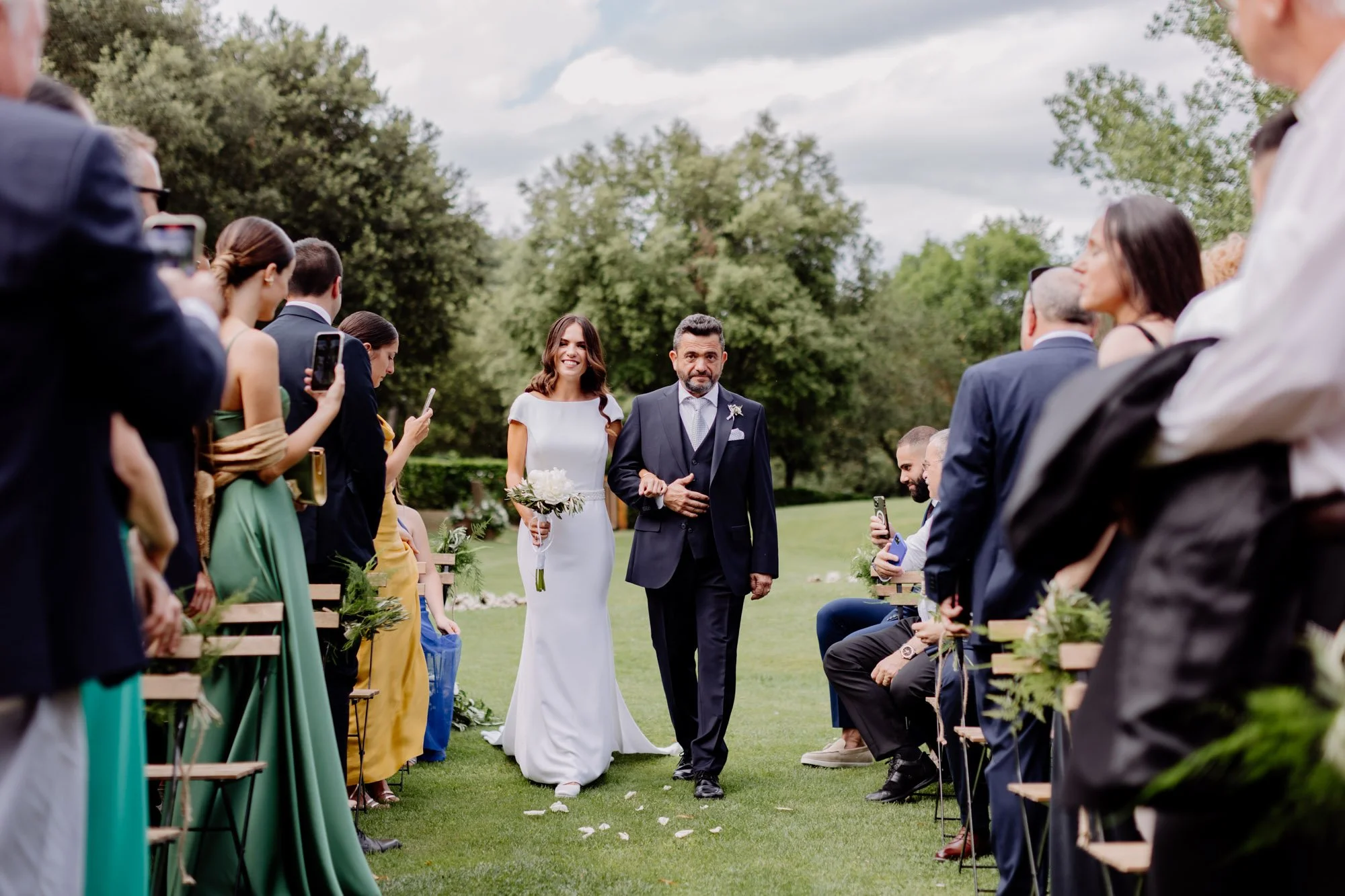 Ese instante donde la novia camina lentamente entre todos los invitados frente la fija e emocionante mirada de ambos al ver que finalmente ese día y momento en el que llevan tanto tiempo esperando ha llegado.