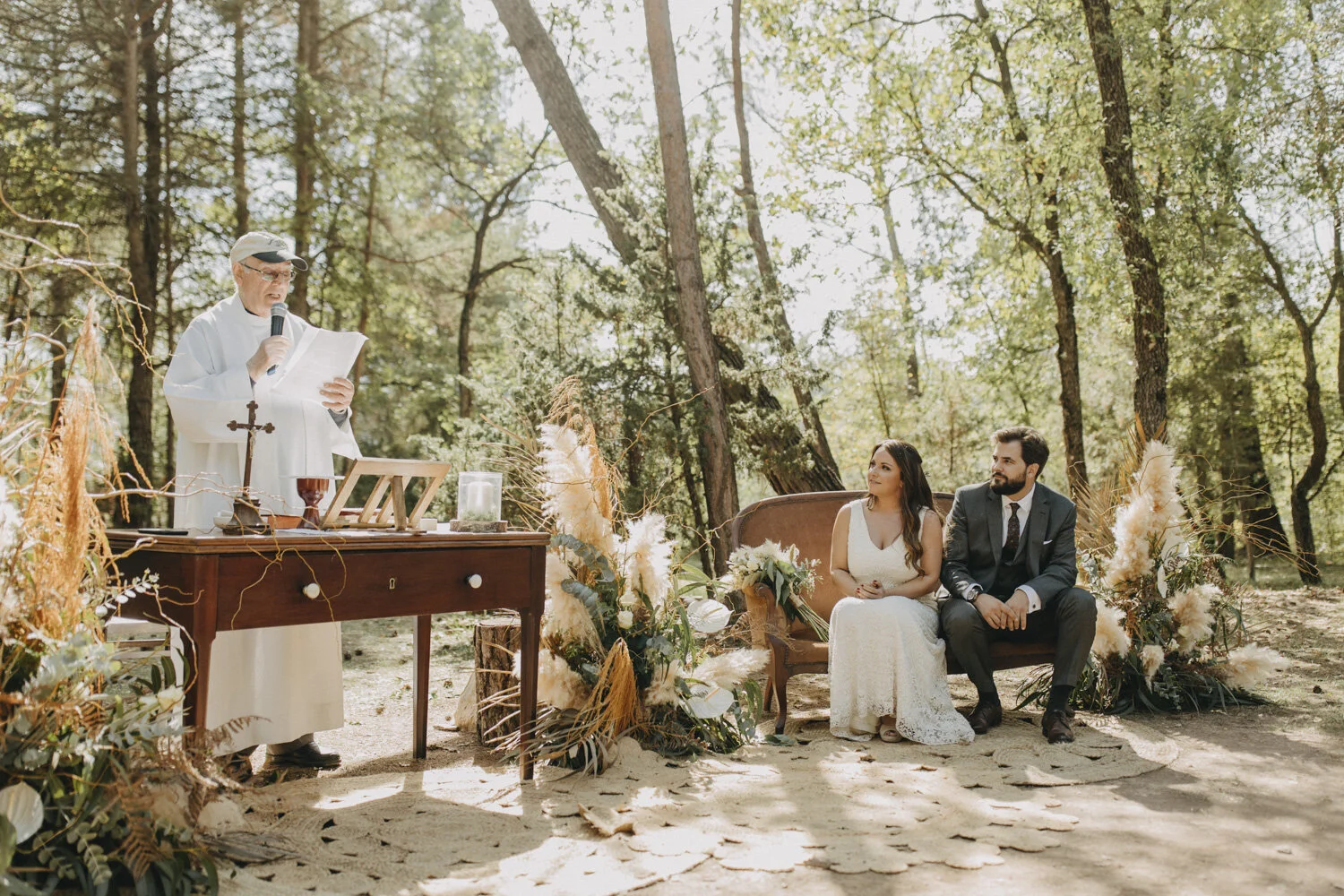 Este pasado 2 de Octubre, se dieron el sí quiero en el increíble espacio de El Dalmau, situado cerca de Vic. El sitio encajaba perfectamente para el tipo de día que querían qué fuese. Hicieron la ceremonia en el bosque y el aperitivo al aire libre. El cátering fue obra de Original Catering.